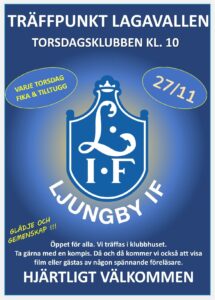 ⚽️ GLÄDJE – GEMENSKAP – GO’FIKA ⚽️Julen närmar sig. Denna torsdag blir det fika och ”tjöt” som vanligt. Nästa torsdag ev. Quiz eller något annat