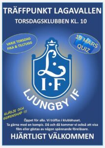 ⚽️ TORSDAGSKLUBBEN MED QUIZ ⚽️En kopp kaffe, lite tilltugg och mycket snack. Du behöver inte vara medlem. Alla är lika välkomna till Ljungbys pratgladaste kafé.