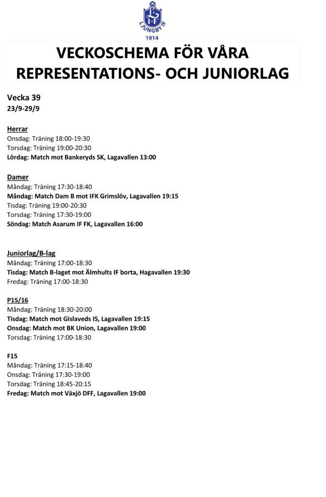 Veckoschema för vecka 39